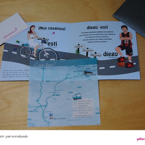 En el carrusel podréis ver varias de las invitaciones que hemos realizado hasta ahora. Hay de muchas clases. Las que mucha gente suele pedir son las caricaturizadas (creadas a partir de vuestras fotos), pero también las hay con alguna temática especial,